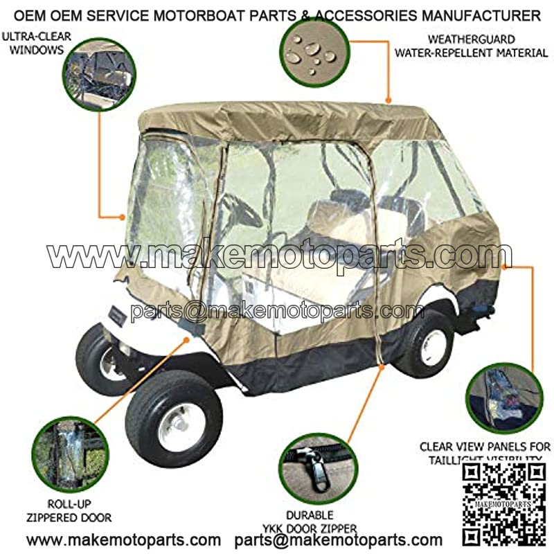600 Denier polyester with PU coated fabricFits most 2 seater golf carts with a benchCrystal Clear PVCCommercial grade side door zipperYKK ZippersWeather Resistant