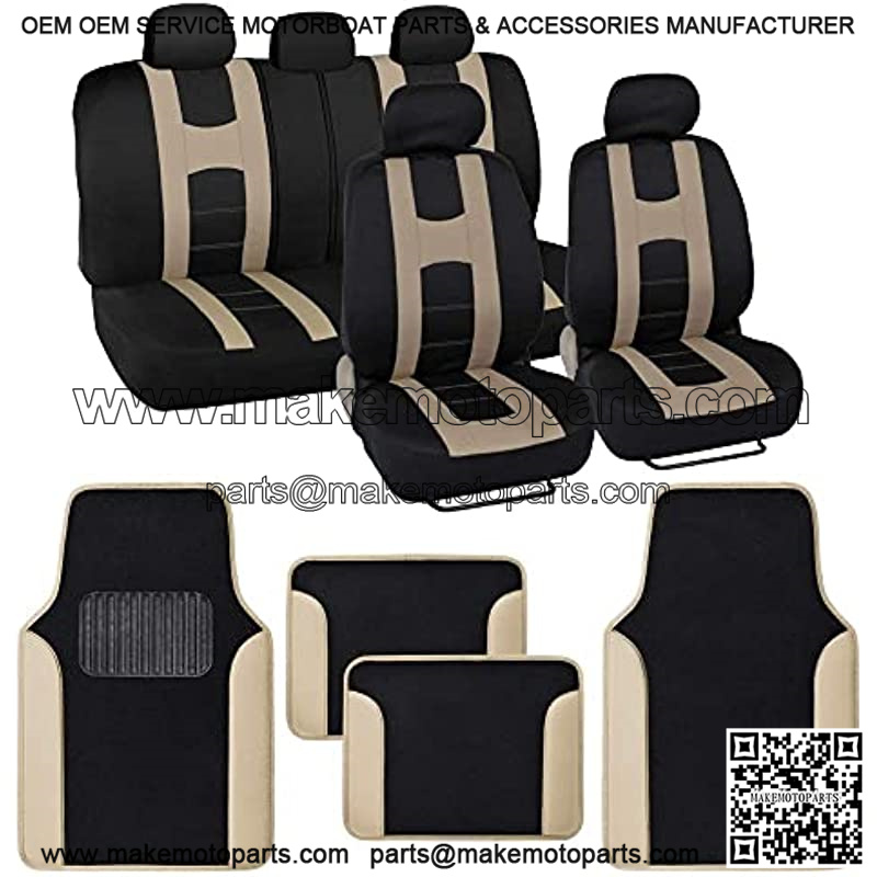 Forza Series Beige Seat Covers Full Set Combo with Car Floor Mats ?C Front and Rear Bench Seat Cover & Floor Mat Protector Set, Interior Covers for Auto Truck Van SUV