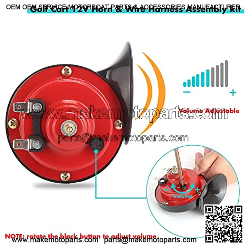 Golf Cart 12 Volt Horn Kit, Horn Switch and Wire Harness Assembly Universal Fit Club Car, EZ-GO and Yamaha and ATV, UTV, Boat ??Upgrade Steering Mount Hand Press Switch )
