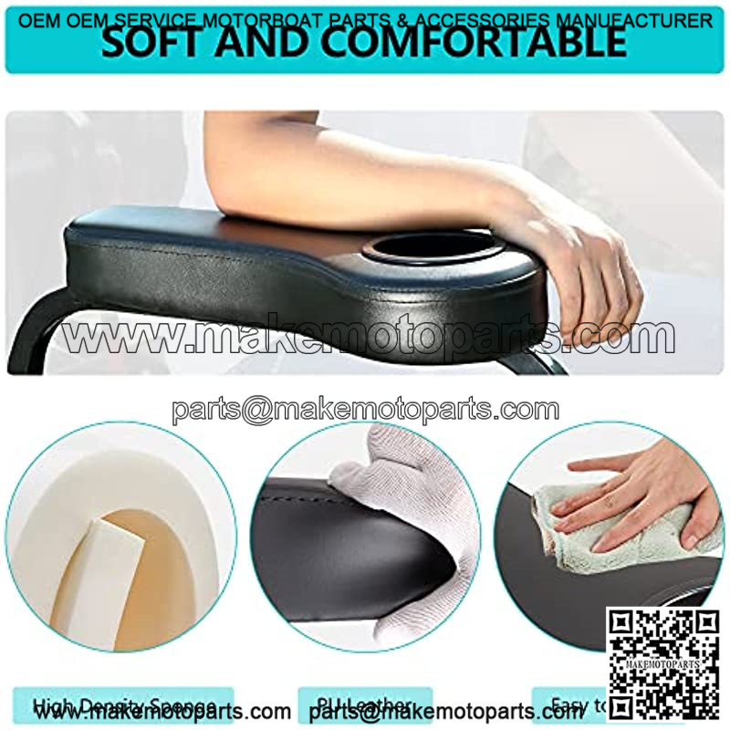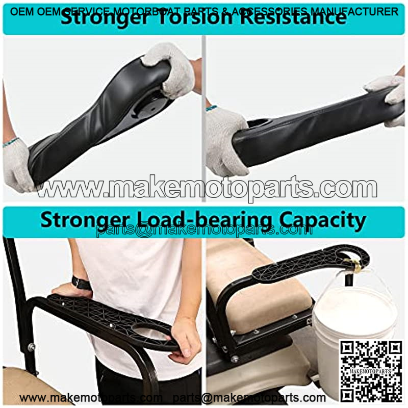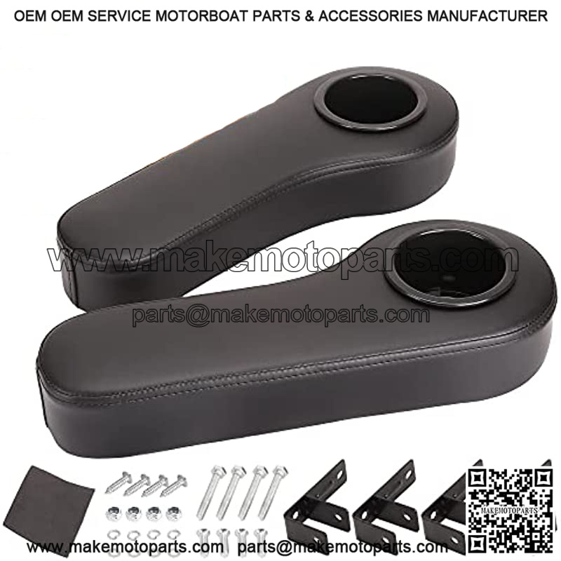 Golf Cart Armrest with Cup Holder for Rear Seat Club Car EZGO Yamaha, Arm Rest with Upgrade Support Frame No Drilling Required – Black/Beige