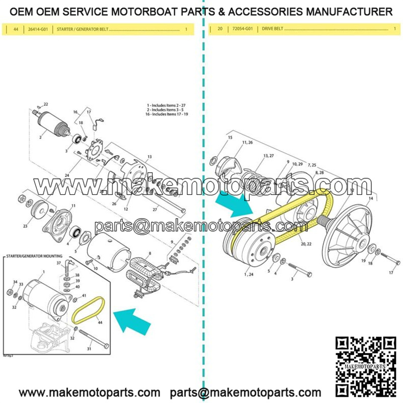 – Package included: 1 x starter generator belt, 1 x drive belt.