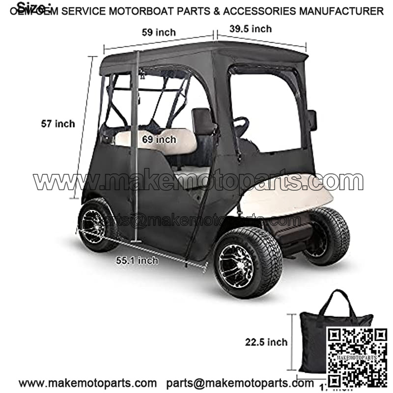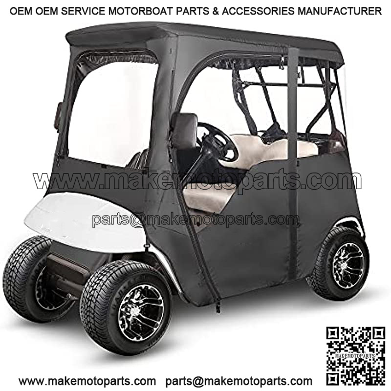 Golf Cart Deluxe Enclosure for EZGO TXT 2 Passenger, 4-Sided Clear PVC Window Rain Cover with Zipper Entry, Black