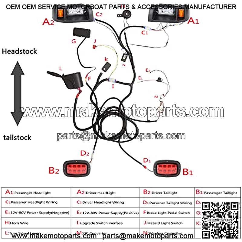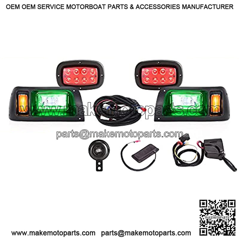 Golf Cart Deluxe LED Headlight &Tail light Kit for Club CAR DS, RGB Music Daytime Light, High/Low Beam Turn Signal Light Hazard Brake Light and Horn, 16V-80V Wide Voltage Input