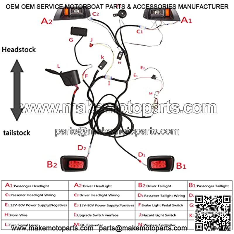 Make golf cart street legal: Come with golf cart turn signal kit, added brake light, hazard flasher, horn, front rear turn signal function to a factory golf cart
