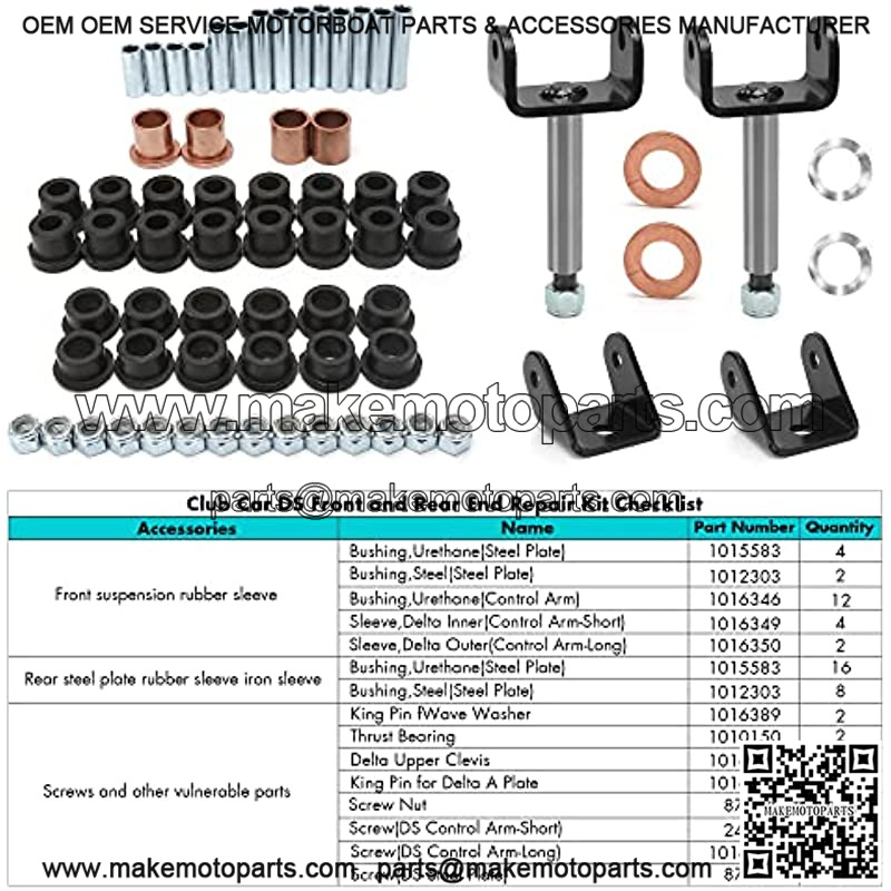 Golf Cart Front and Rear End Repair Kit fit Club Car DS 1992-Up Gas & Electric Models with Kingpins/Delta A arm bushings/Front & Rear Leaf Spring Bushings and Bolts/Clevis