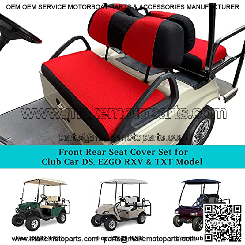 Golf Cart Front Rear Seat Cover Set for EZGO TXT RXV & Club Car DS 2000-up(Flat Backrest), Made w/ 3D Air Mesh Polyester Fabric Breathable Washable