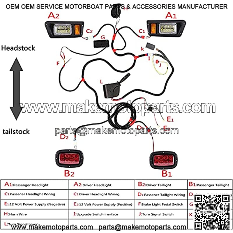 Package included : Yamaha G22 light kits and golf cart universal deluxe light upgrade kit. 2x LED head lights, 2xLED tail lights, turn signals and switch, horn, brake lights, harness hardware and instruction.
