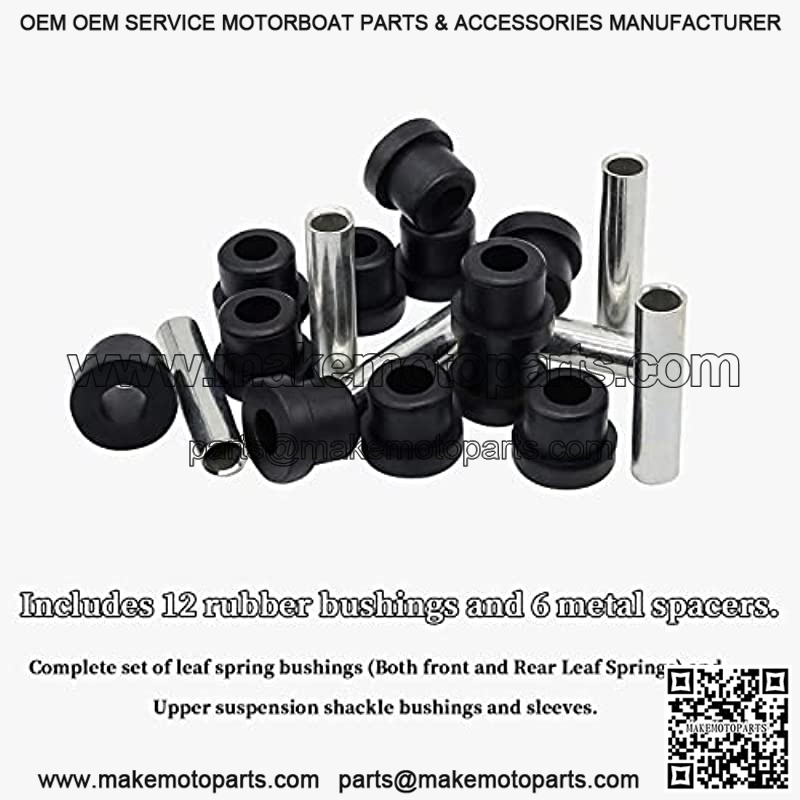 ??Package Included ??12Pcs rubber bushings and 6Pcs metal spacers.Complete set of leaf spring bushings (Both front and Rear Leaf Springs) and Upper suspension shackle bushings and sleeves.