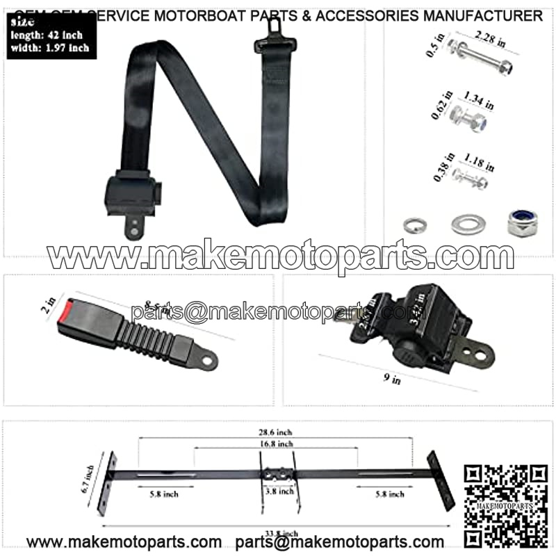 Golf Cart Retractable 2 Passenger 42″ Seat Belts with Belt Bracket Kit for Yamaha Club Car DS Precedent EZGO TXT RXV