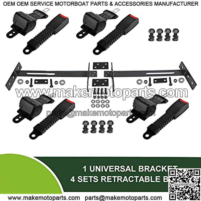 ??Universal Fit??4 Passenger Retractable Seat Belts and Bracket Kit fit most Club Car,EZGO and Yamaha golf carts,Go Kart, UTV and more.NOT WORKS ON 2 Passengers Club Car Precedent/Yamaha G2 G9/Drive/Drive2 and EZGO RXV models.