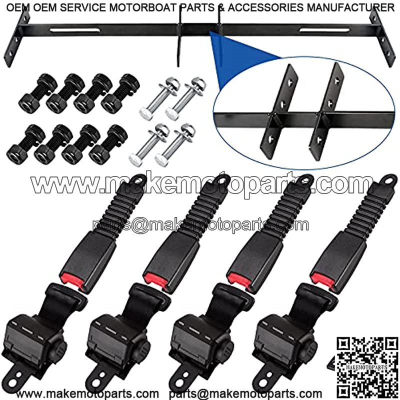 Golf Cart Seat Belts Bracket Kit for EZGO TXT Club Car DS Yamaha 47.64″ Retractable 4 Seat Belts, One Piece Solid Design-Not Fit 2 Passengers Club Car Precedent/Yamaha G29/Drive/Drive2 & EZGO RXV