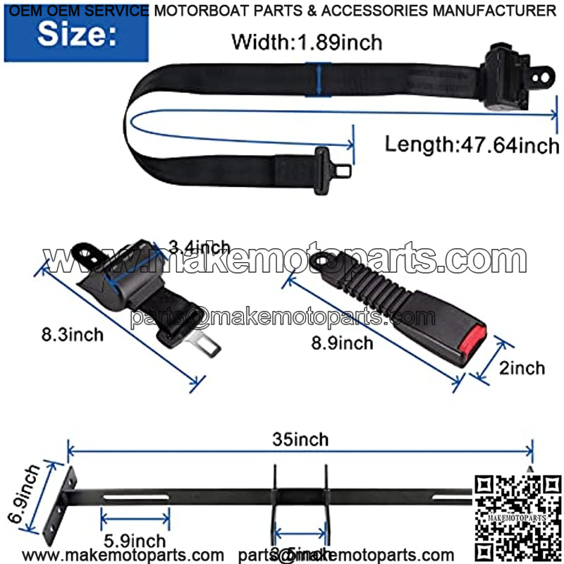 ??Specification??Retractable golf cart seat belts can be extended to 47.64″, width of 1.89″, enough length and width will bring you a more comfortable experience. Bracket size??35″ x 6.9″, please check if the provided bracket size can be installed on your cart.