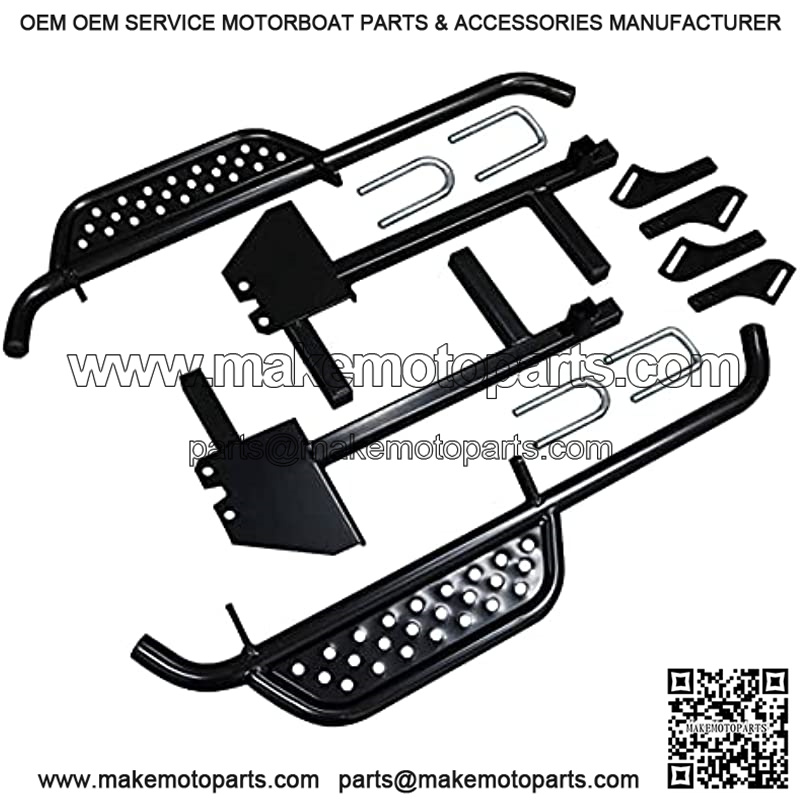 Climbing in and out of your golf cart has never been easier than with the Golf Cart Side Board Nerf Bar kit. This kit includes a set of Driver and Passenger Nerf Bars for the Club Car DS (2004 to present, Gas and Electric) and all necessary mounting hardware and instructions. It is engineered with durable, high quality steel, machine welded for long-lasting strength, and complemented with black weather-resistant powder coating. Easy DIY installation takes up to 1 hour to finish, plug and play using the included hardware and step-by-step instructions. A great upgrade to both the looks and functionality of your cart and a perfect complement for golf carts with lift kits.Note – Comes with the adapter bracket kit designed to fit on all Club Car DS Golf Carts.Compatible with 2004-Up Club Car DS gas & electric golf carts.