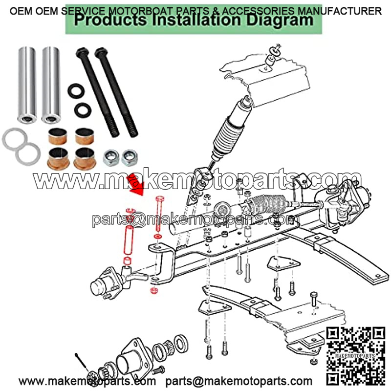 Golf Cart Spindle Bushings Kit fit EZGO RXV 2008-UP & EZGO TXT/PDS 2001-UP, Bushing Spindle, King Pin Tubes, ClCopper Sleeves Kit, OEM#70648-G01 70749G01 70745G01