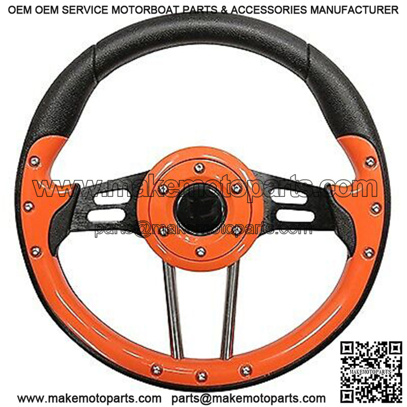 . Includes (1) Custom Steering Wheel- 13″ Diameter (adapter NOT included) . Style: Aviator 4 . Color: Orange Grip with Black Spokes . Easy installation on EZGO, Club Car and Yamaha Golf Carts . Custom Steering Wheel Adapter (5 or 6 hole) is required and is sold separately . Horn button is for aesthetic purposes only . Upgrade the look of your golf cart with this stylish orange & black steering wheel .