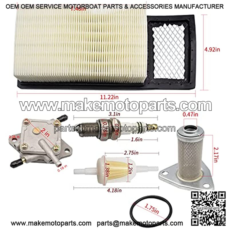 Replacement For:Fuel Pump replaces for #72021-G01?? Fuel Filter Universal 1/4″ and 5/16″?? Oil Filter with rubber ring replaces for #26591-G01.Air Filter replaces for #72368-G01, Spark Plug 5307 Single Pole