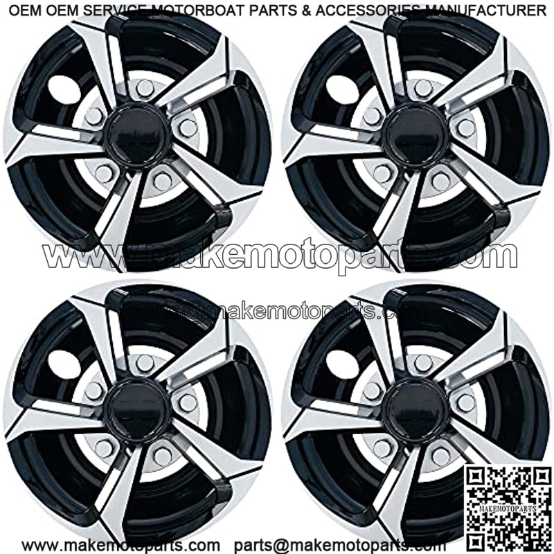 Golf Cart Wheel Covers Hub Caps Silver Automobile Finish & Black for EZGO Club Car Yamaha Universal 8″ New(Set of 4)