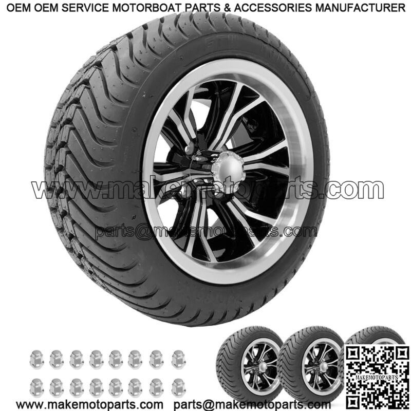 Golf Cart Wheels 12″ Phenom Machine/Black on Street Tires Set of 4