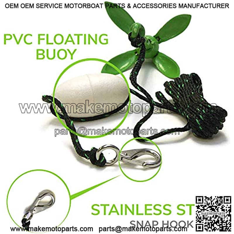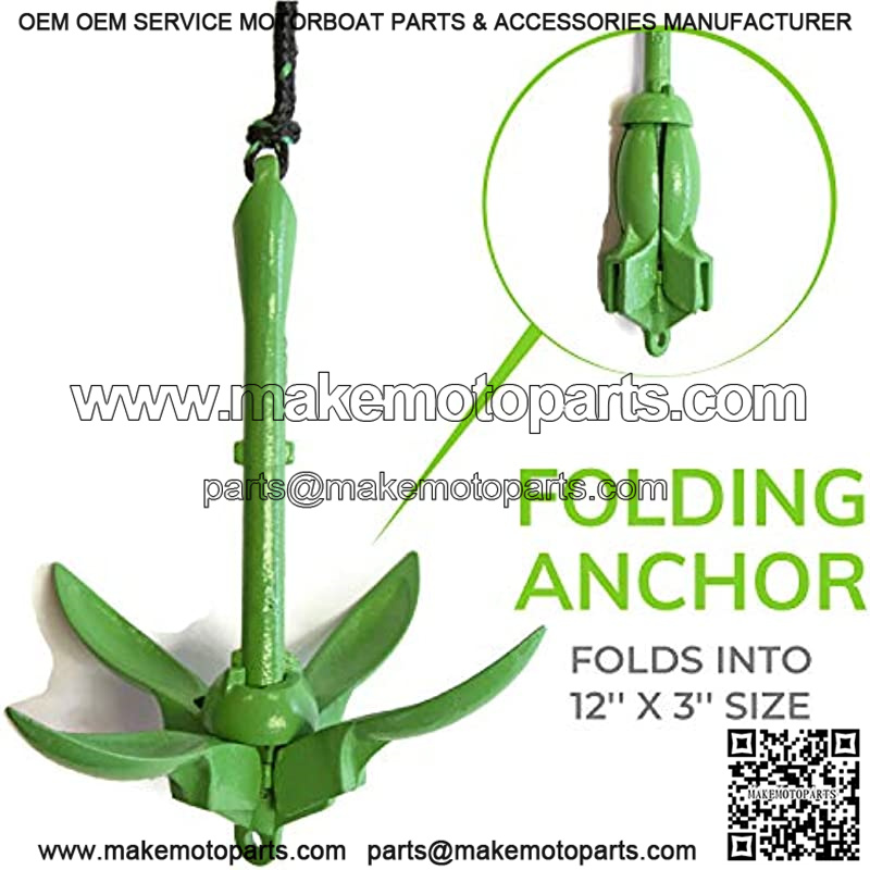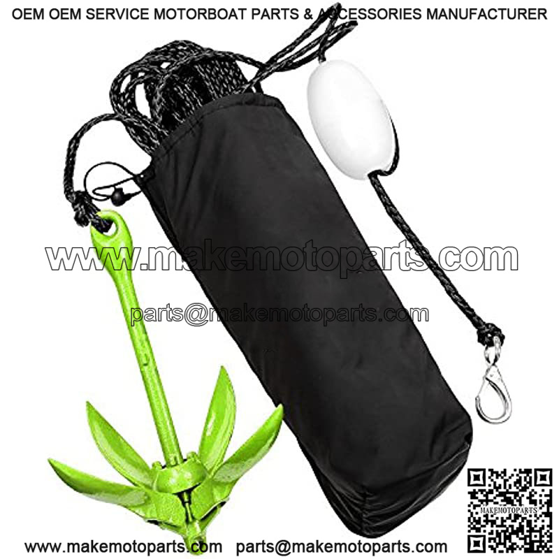 Marine Grade: The anchor is rust resistant with 25 feet of green/black marine grade rope (7mm thick). It also includes a PVC flotation buoy and stainless steel snap hook for quick and easy connections.