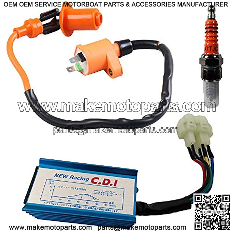 GY6 Ignition Coil Set Ignition Coil+ 6 Pin CDI + Spark Plug for 50cc 125cc 150cc 4-stroke Engines Scooter ATV Go Kart Moped Quad Pit Dirt Bike Cart