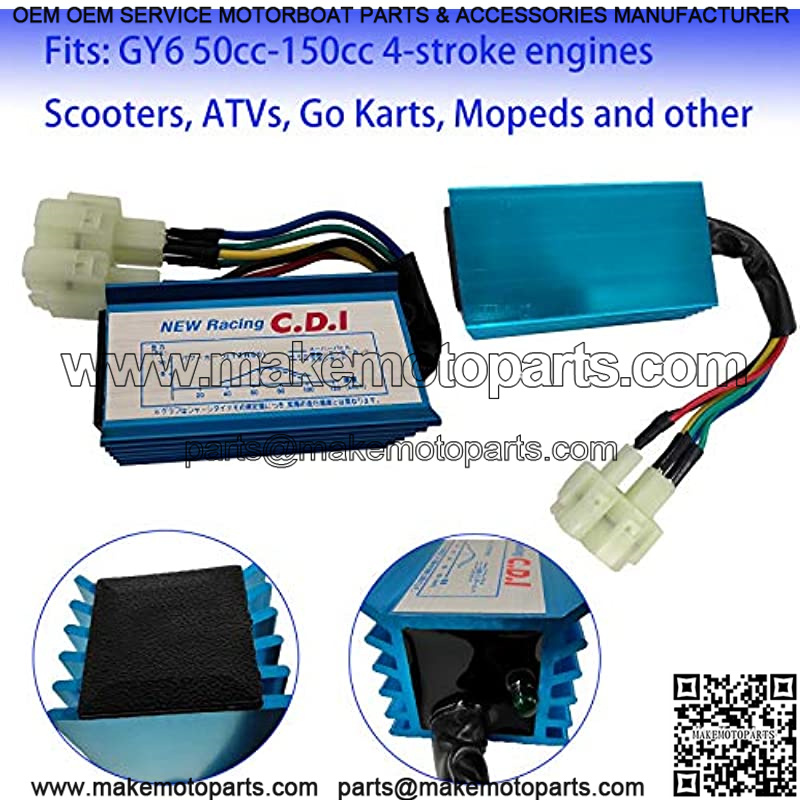 6 Pin AC CDI box Fits: GY6 50cc-150cc 4-stroke engines Scooters, ATVs, Go Karts, Mopeds and other Bikes