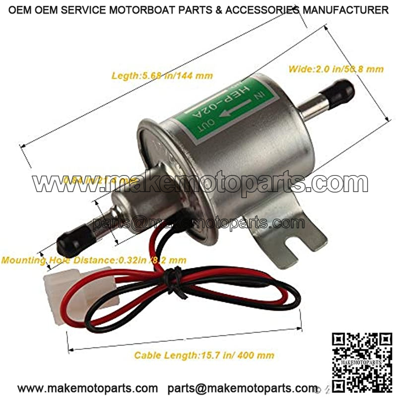 Package includes:1x Fuel Pump HEP-02A Easy to fit and connect. 2 bolt fixing , 2 wire design.Using a plunger-type of fuel supply way, suction stronger,oil supply more stable.