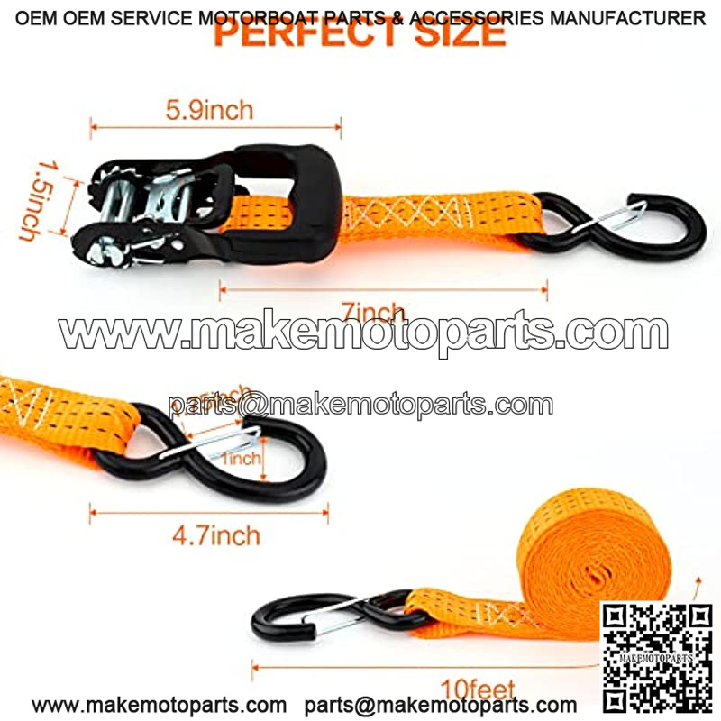 SUPERIOR BREAK STRENGTH??These 1.5″ x 10′ heavy-duty ratchet tie down strap is made with double-thickness polyester webbing, weather resistance and won’t stretch when wet, not only makes the straps soft so they don’t scratch your load, but also makes them strong,with break strength of 3,000 lbs