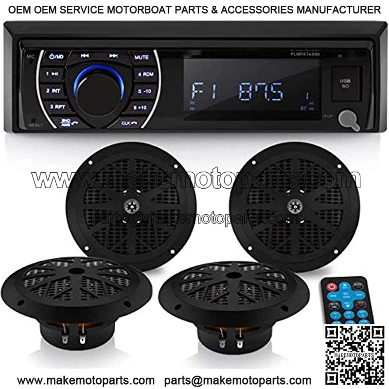 Pyle Model: PLMRKT48BKPyle Bluetooth Marine Stereo Receiver & Speaker Kit | AM/FM Radio Headunit with Wireless Streaming | Hands-Free Calling Ability | (4) Waterproof 6.5″ Speakers | MP3/USB/SD/AUX | Single DIN | 4 x 75 Watt