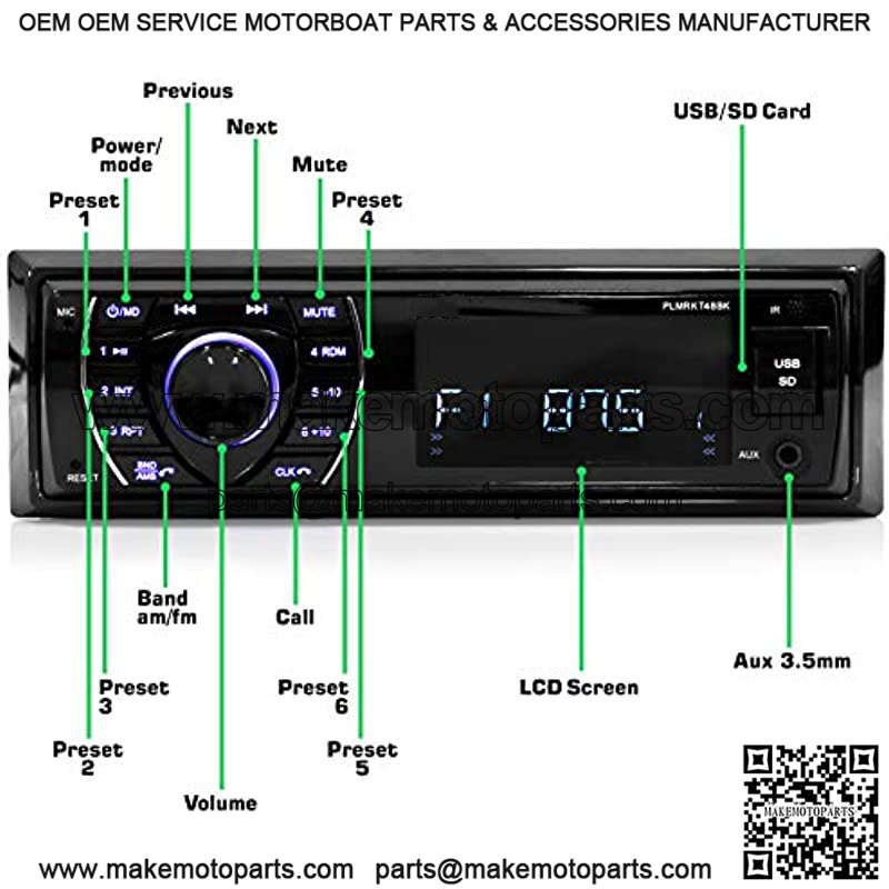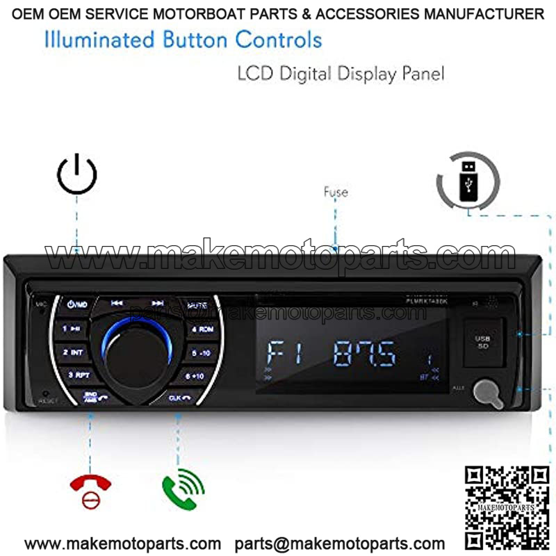The Pyle Bluetooth Marine Stereo Kit includes a radio receiver and (4) waterproof marine grade speakers. The kit’s single DIN universal standard headunit comes loaded with features like built-in Bluetooth, AM/FM radio with 30 presets, USB flash drive reader, micro SD memory card reader — along with an Aux (3.5mm) input jack. You will have the ability to connect and stream audio from all of today’s latest devices (like smartphones, tablets and MP3 players). Bluetooth allows for easy wireless music streaming and hands-free talking ability — thanks to the integrated microphone on the receiver??s front panel. Stream your entire MP3 playlist with digital audio file support, all while having quick access to the front panel control center and digital LCD display screen. The four 6.5″ -inch included component speakers provide full range stereo sound reproduction and are universal standard sizes for quick OEM speaker replacement. Upgrade your marine vehicle??s sound system with the Pyle Stereo Receiver & Waterproof Speaker Kit.