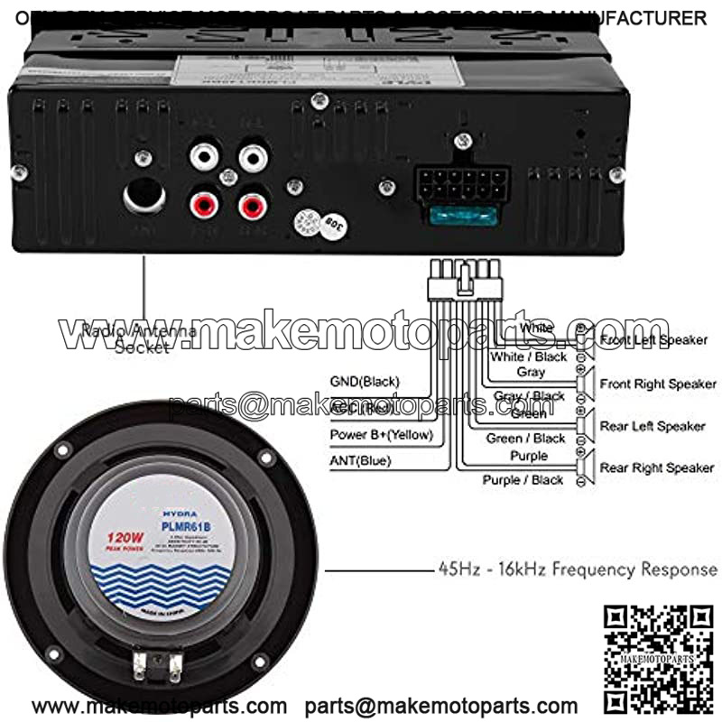 2-WAY CONE SPEAKERS: Pyle marine receiver includes four 6.5?? speakers with marine grade waterproof construction. The speaker is pack with 4-ohm impedance rating, 20 oz. circuit magnet, 1.0?? aluminum voice coil, and 45Hz – 16kHz frequency response