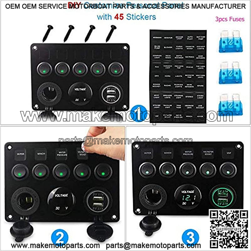 Multi-Functions Panel; Dual USB Socket + Voltmeter + 12V Outlet + 5 Toggle Switches