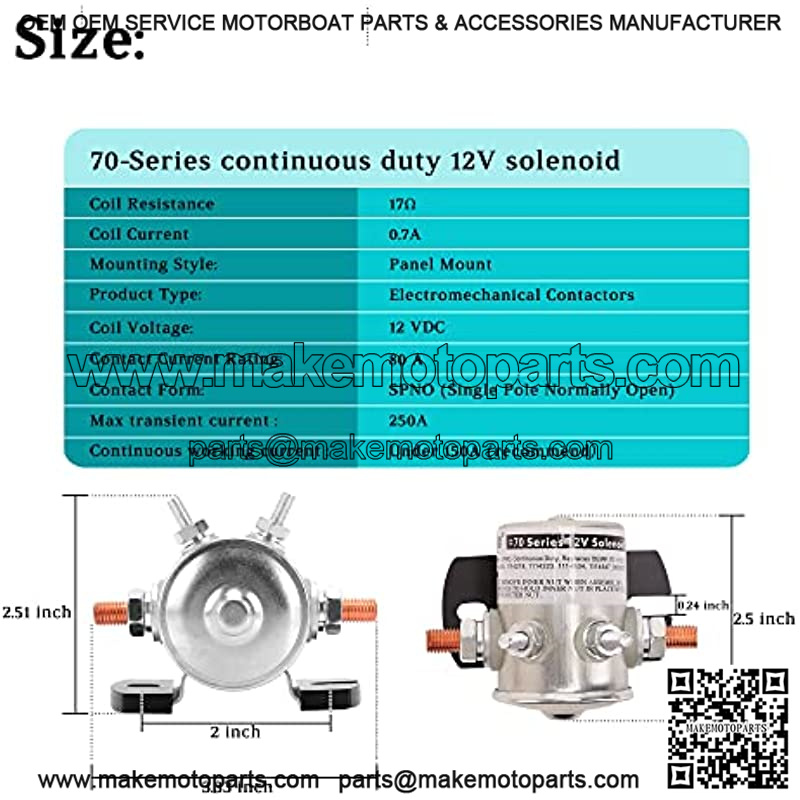 Max 250A Continuous Duty 12V Solenoid Relay for Golf Cart EZGO Marathon 1979-1994 Gas, Forklift, Tractor, RV, Marine, Motor, Winch, OEM# 16542-G1 70-111224 3635820 1114208 1114218 1114223