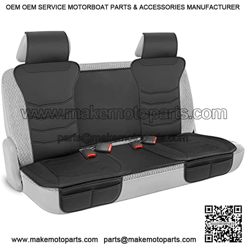 Motor Trend LuxeFit Black Faux Leather Rear Bench Car Seat Cover ?C Premium Automotive Back Seat Cover for Cars, Padded Car Seat Cushion with Pockets, Adjustable Interior Car Seat Protector