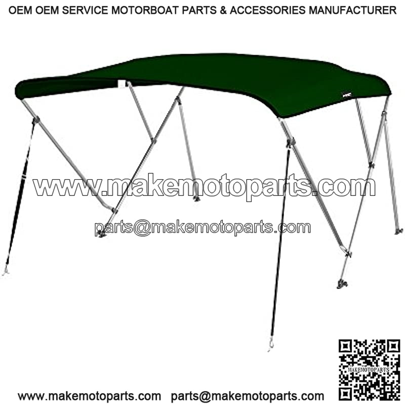 MSC 3 Bow 4 Bow Bimini Top Boat Cover with Rear Support Pole and Storage Boot (3 Bow 6’L x 46″ H x 54″-60″ W, Forest Green)