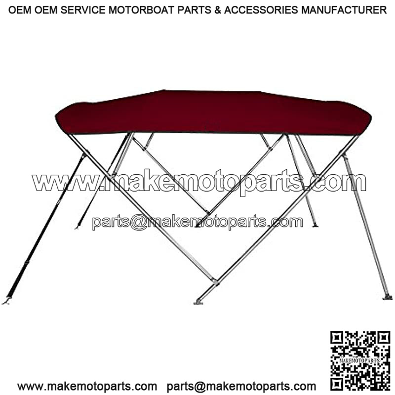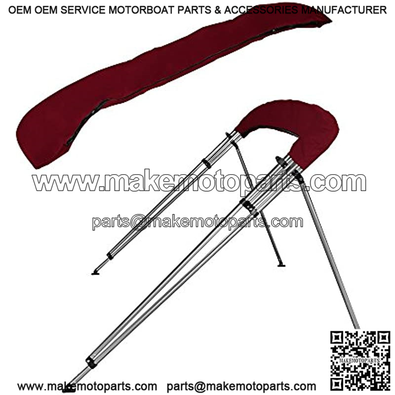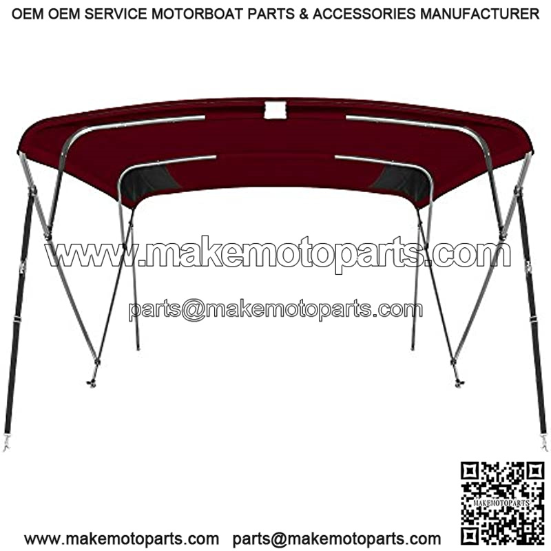 MSC 3 Bow 4 Bow Bimini Top Boat Cover with Rear Support Pole and Storage Boot (4 Bow 8’L x 54″ H x 79″-84″ W, Burgundy)