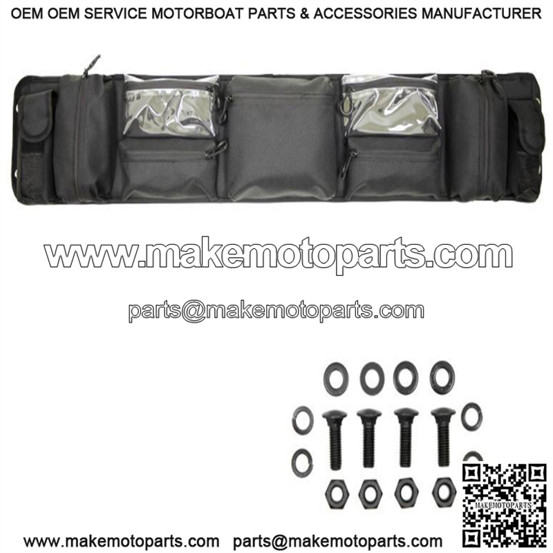 . Includes (1) Overhead Storage System . Durable canvas construction with plastic backing to maintain shape and prevent sagging like a net or hammock . 3 felt lined pockets to protect sunglasses, cell phones, and other valuables . Rubber-coated, paracord zipper closures . Multiple pockets for endless configurations . Designed for the RedDot Versa Triple Track Top (will also fit RedDot Top Sail Canvas Top) . Includes mounting hardware . Will also multiple OEM & aftermarket tops with minor modifications** . Product Dimensions: 41?? wide x 8?? tall .