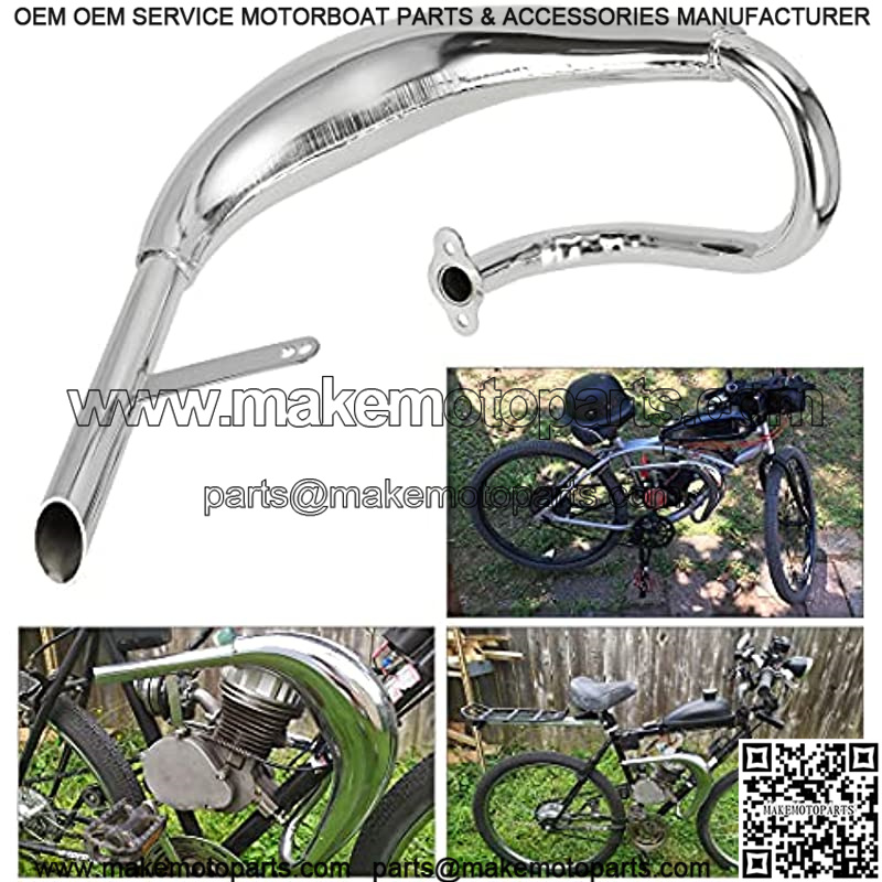 Performance Chrome Exhaust Muffler Expansion Chamber Pipe Silencer Gasket for 2 Stroke 50cc 66cc 80cc 100cc Engine Gas Motorized Bicycle Motor Bike Silver