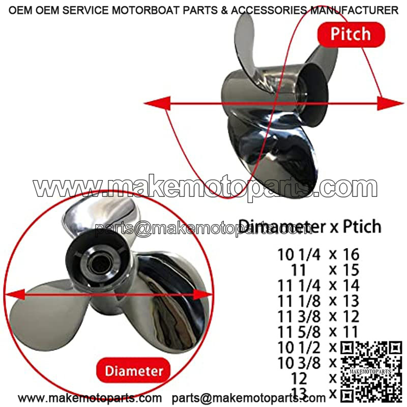 ??Model Specification??:11 Diameter x 15 Pitch,13 Spline Tooth; Right Rotation; 3 Blade; adopt High Quality Stainless Steel material for better performance