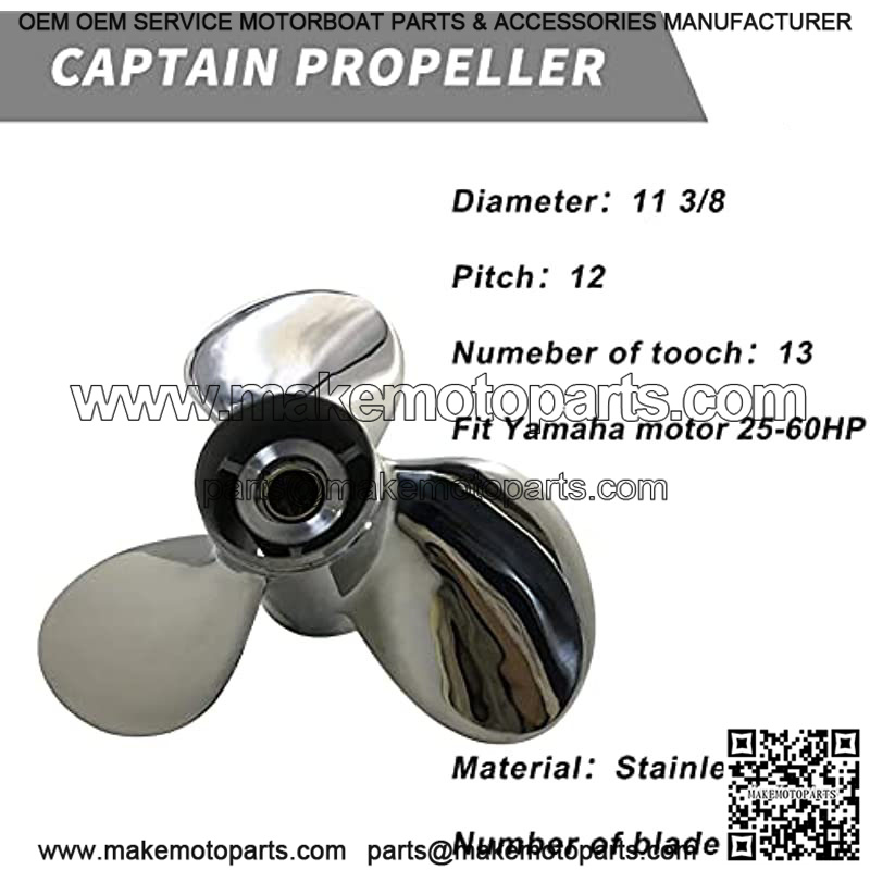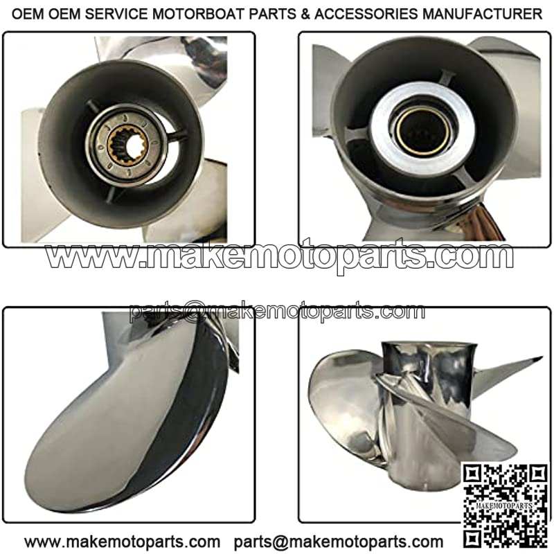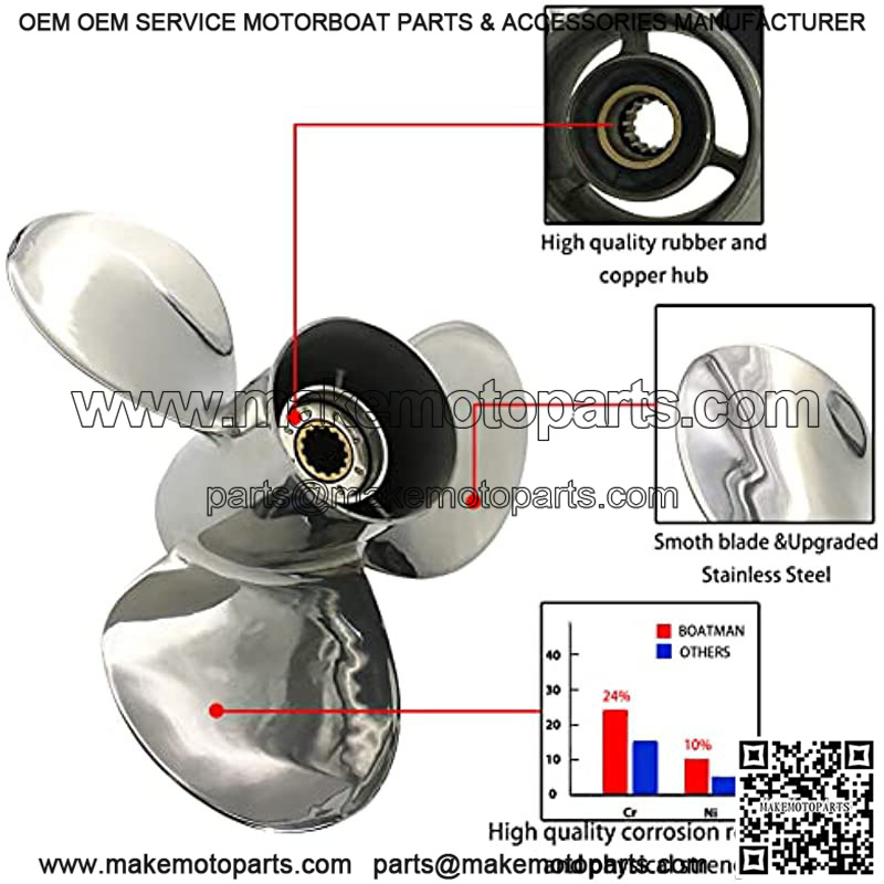 Polished Stainless Steel Outboard Propeller fit Yamaha Boat Engines 25-60 Hp,13 Spline Tooth,RH