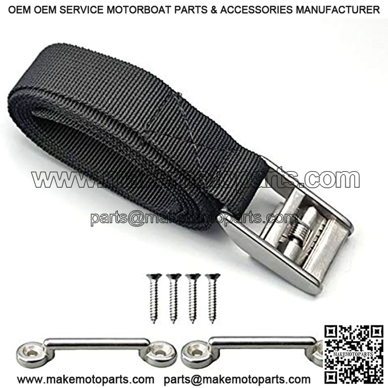 Pool spa Part 56″ Battery Tie Down Strap Kit Battery Hold Down Strap with Stainless Steel 316 Buckle, 2 Stainless Steel 316 Eye Strap Mounts, 4 SS Screws