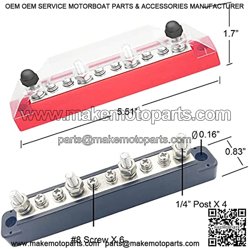 Bus Bar Terminals: Come with one black bus bar and one red bus bar, each battery distribution block included 6 x M4 terminal screw, 4 x M6 terminal studs, suitable for #8 and 1/4″ insulation ring terminals, dimensions: 5.5 x 1.7 x 0.83inch