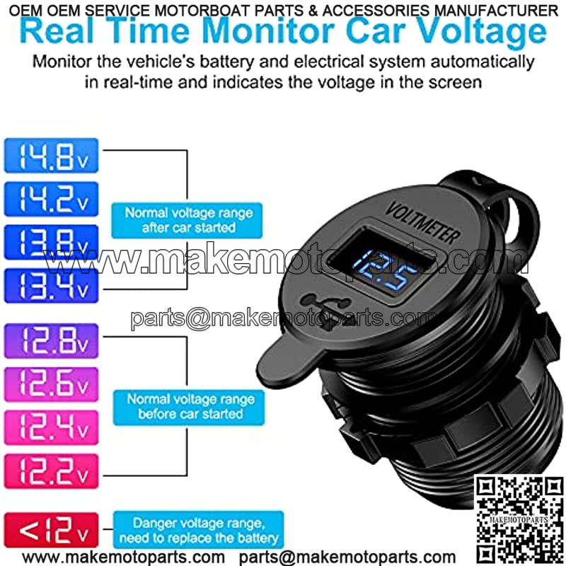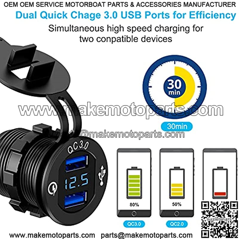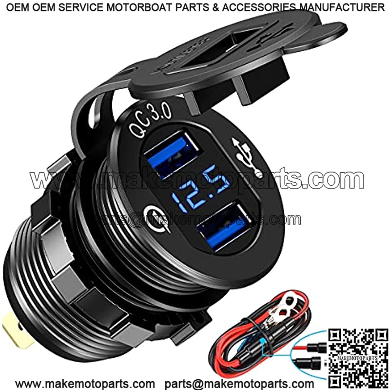 Quick Charge 3.0 Dual USB Charger Socket,with LED Digital Voltmeter & Wire Fuse DIY Kit,Aluminum Power Outlet Fast Charge, for 12V/24V Car, Golf Cart, Boat, RV, Motorcycle, Truck and More