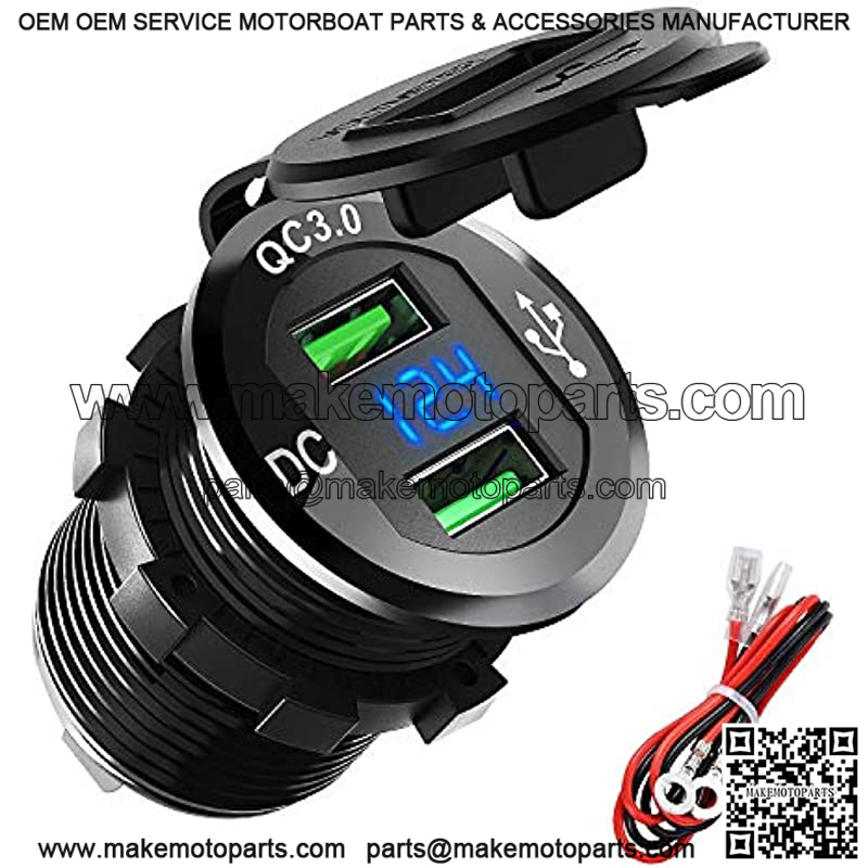 Quick Charge 3.0 USB Charger Socket, ADSDIA 12V/24V 36W Aluminum Waterproof Dual Car Charger Power Adapter Outlet with LED Display for Car Boat Marine Motorcycle Scooter RV Golf Cart DIY Kit