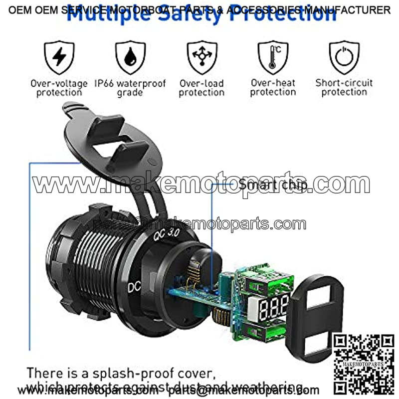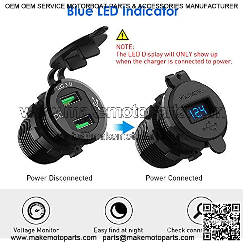 ??Broad Compatibility??The Quick Charge3.0 12 volt USB outlet fits for 12/24V car, boat, marine, motorcycle, ATV, RV etc. Suitable for charging mobile phone(Note: iPhone series does not support fast charging, it is normal speed ), GPS, digital camera and other USB accessories etc.