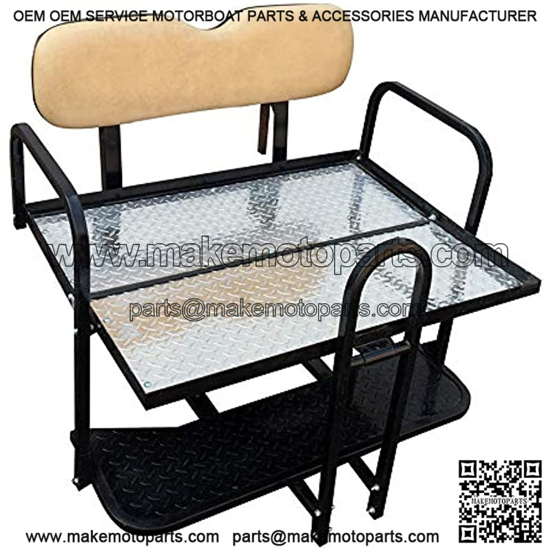 FREE SAFETY GRAB BAR! Bolt On Design Fits EZGO TXT, Full COLOR Instructions (Fits 1995-2013) 3.5?? Thick Seat Bottom Cushion is much thicker than our nearest competitors equal seat Heavy Duty Gloss Black Finish to Resist Fading, Highly Polished Diamond Plate Cargo Deck Area Includes everything needed for installation. Your existing factory roof supports would be re-used with this seat kit 360 Degree Rail 1?? Tall ALL the way around to hold cargo in place and for added strength of the flip deck This rear seat fits EZGO TXT, we include everything needed for an easy stress free installation. This kit is a simple bolt on design with FULL COLOR instructions. Our seat kit easily allows you to flip the rear seat cushion out using our integrated grab strap and turn this Into a cargo bed. Our cushions are thicker and softer than the nearest competitor. When we look for a manufacturer we look strictly at quality, durability, and ease of installation. We then field test and have our certified technicians approve all items to ensure our customers always get the best product possible. Only once it has passed our testing do we begin offering that item. That is our quality assurance guarantee only from Performance Plus Carts. We put the time in up front to ensure the happiest customers in the end.