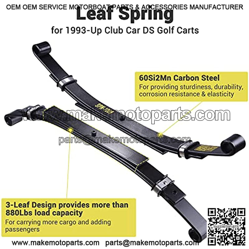 Rear Heavy Duty Leaf Spring Compatible with Club Car DS Golf Cart Heavy Duty Dual Action with Bushings(Set of 2)