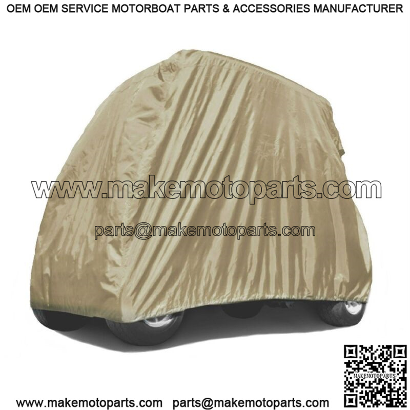 Universal Golf cart storage cover fits carts with 54″ tops carrying just two passengers. It features weather resistant nylon with zippered entry ventilation and a strong elastic cord sewn into the bottom for a snug fit. Color : Tan