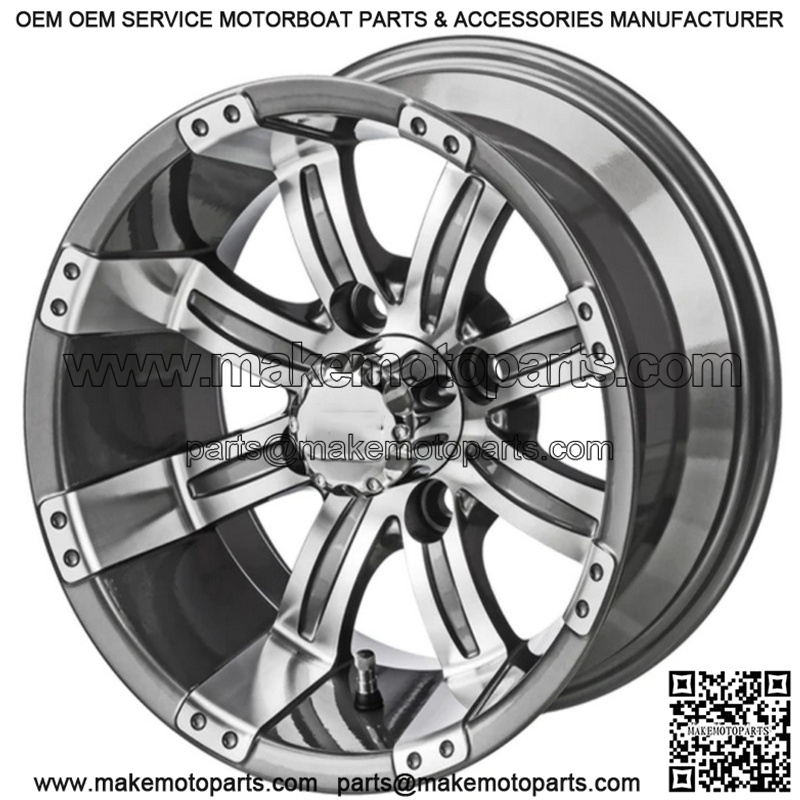 10″ Casino Gun Metal Gray & Machined Golf Cart Wheel Center Cap included Wheel Dimensions: 10X7 with 4×4 bolt pattern and 3+4 offset Lug Nuts sold separately