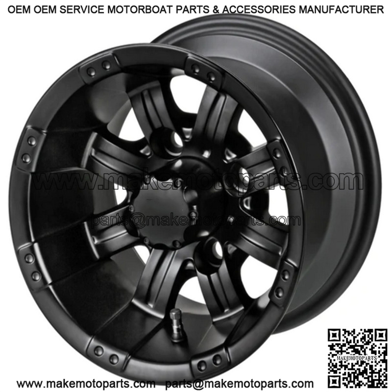 10″ Casino Matte Black Golf Cart Wheel Center Cap included Wheel Dimensions: 10X7 with 4×4 bolt pattern and 3+4 offset Lug Nuts sold separately