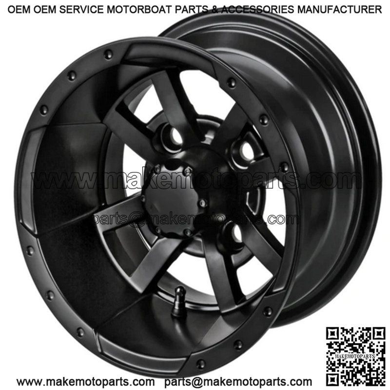 10″ Maltese Cross Matte Black Golf Cart Wheel Center Cap included Wheel Dimensions: 10X7 with 4×4 bolt pattern and 3+4 offset Lug Nuts sold separately